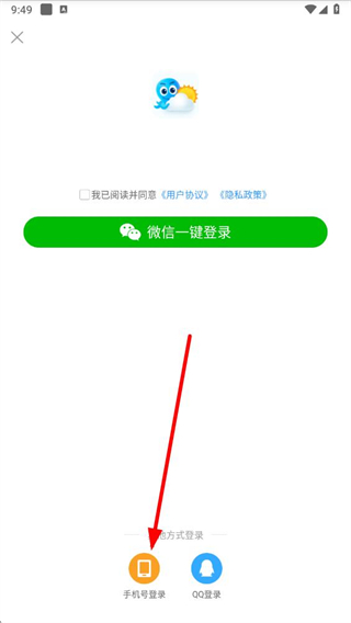 3、在登錄界面,選擇手機(jī)號登錄選項,進(jìn)入手機(jī)號登錄頁面。