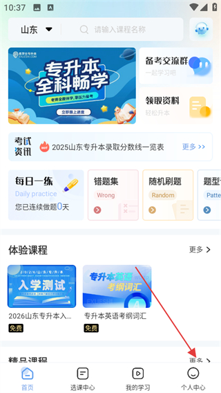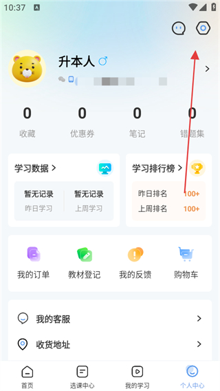 1、打開易學(xué)仕專升本APP,點(diǎn)擊底部導(dǎo)航欄中的個人中心選項。