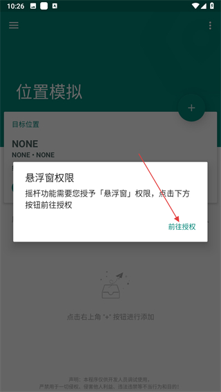 2、在彈出的懸浮窗權限提示框中,點擊前往授權按鈕。