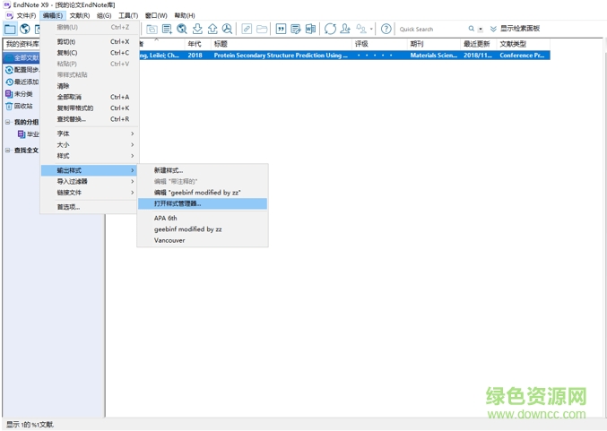 在 EndNote 界面上依次單擊“編輯”(Edit)——>““輸出樣式”(Output Styles)——>“geebinfmodified by zz”“geebinfmodified by zz”即可。