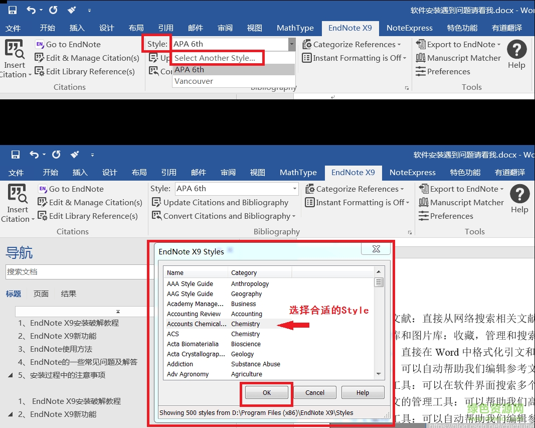在Word中點開EndNote X9工具欄,選擇Style—>Select Another Style...,選擇合適的引用文獻類型即可!Select Another Style...,選擇合適的引用文獻類型即可!