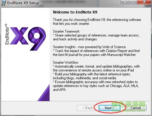 1.解壓縮在綠色資源網(wǎng)下載的endnote x9安裝包,雙擊“ENX9Inst.msi”