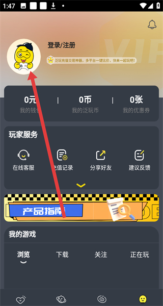 2、在我的主頁中,可以點擊上方頭像區(qū)域,準(zhǔn)備進行登錄操作。
