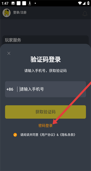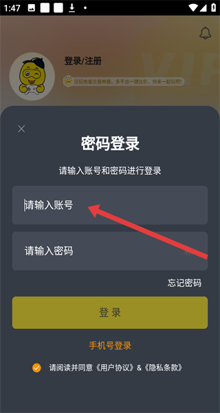 4、在切換為密碼登錄后,點擊輸入框依次填寫賬號和密碼,即可完成登錄操作。