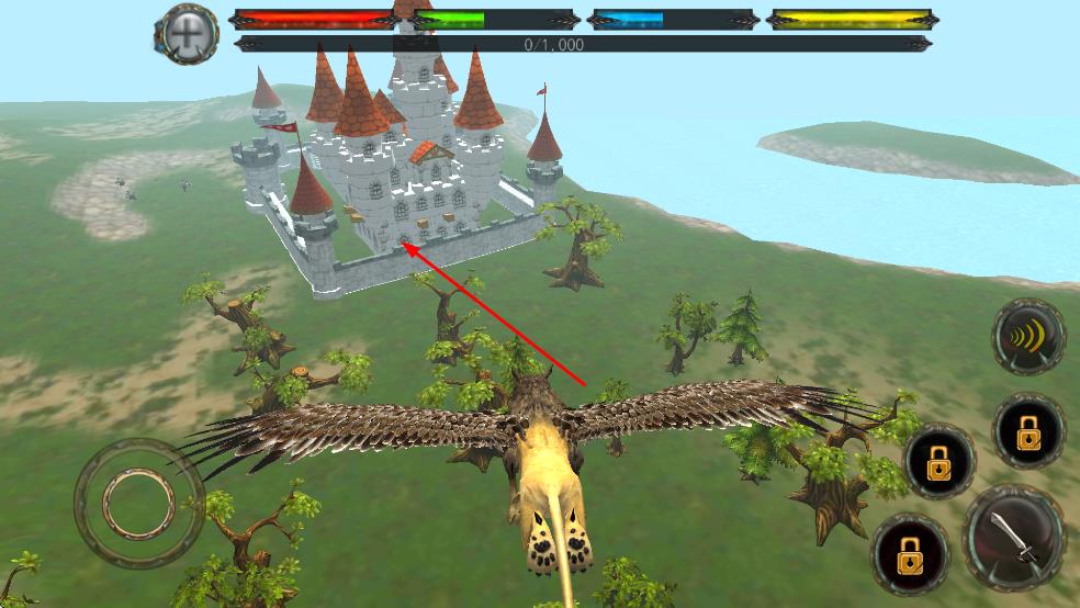 2、操控獅鷲朝著城堡方向飛行,留意城堡的建筑細節(jié)和周圍環(huán)境,調整飛行軌跡,確保能順利抵達城堡區(qū)域,為后續(xù)行動做準備。