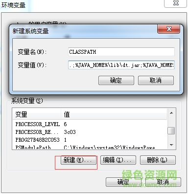 4.新建CLASSPATH ,下面輸入.;%JAVA_HOME%\lib\dt.jar;%JAVA_HOME%\lib\tools.jar