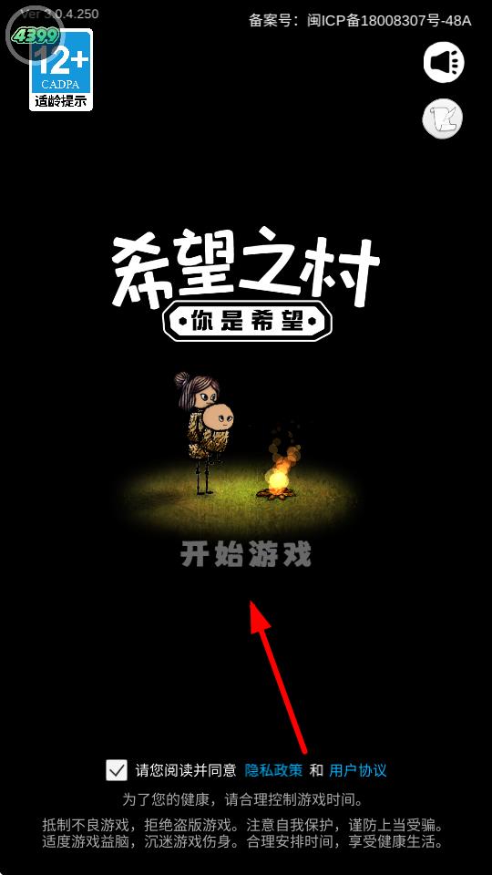 1、實名認(rèn)證后,勾選請您閱讀并同意隱私政策和用戶協(xié)議,點擊開始游戲,進(jìn)入游戲流程。