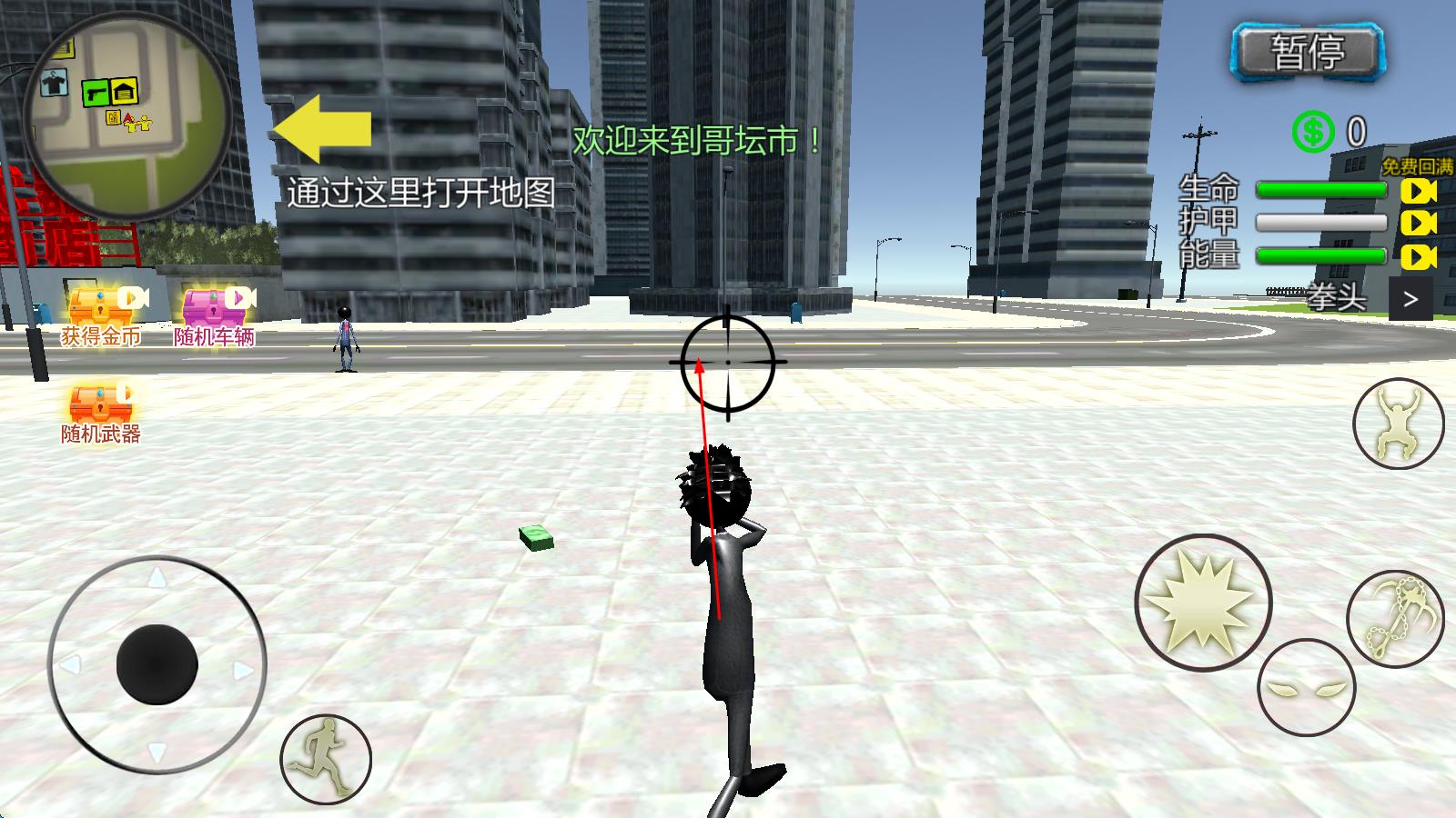 1、進入逃亡的超人最新版,先熟悉簡單操控方式,從武器庫中挑選初始武器,開啟首段打擊罪犯、救贖城市的冒險旅程。