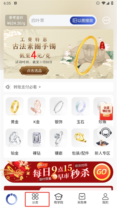 1、進入軟件后為了能夠找尋更多商品,可以在下方分類中找尋所有的商品;