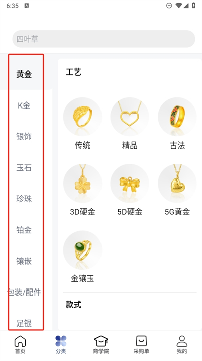 2、進入分類中可以看到在平臺中售賣的各種商品分類,各種商品都會進行詳細的分類管理;