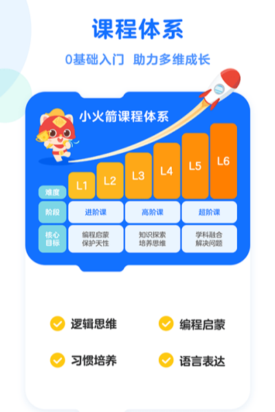 小火箭幼兒編程是為少兒提供的編程軟件,這里將編程圖案化,將各種積木進(jìn)行拼圖編程,從小培養(yǎng)孩子的思維邏輯能力,大腦的反應(yīng)能力,不一樣的學(xué)習(xí)方式,讓你的孩子贏在起跑線,專業(yè)為幼兒打造啟蒙的編程學(xué)習(xí)體驗(yàn),全面的系統(tǒng)分級(jí)課程體驗(yàn),趣味的動(dòng)畫(huà)教學(xué)內(nèi)容,用您的手機(jī)就能夠?qū)W習(xí)編程,需要的用戶快到這里點(diǎn)擊下載體驗(yàn)吧。
