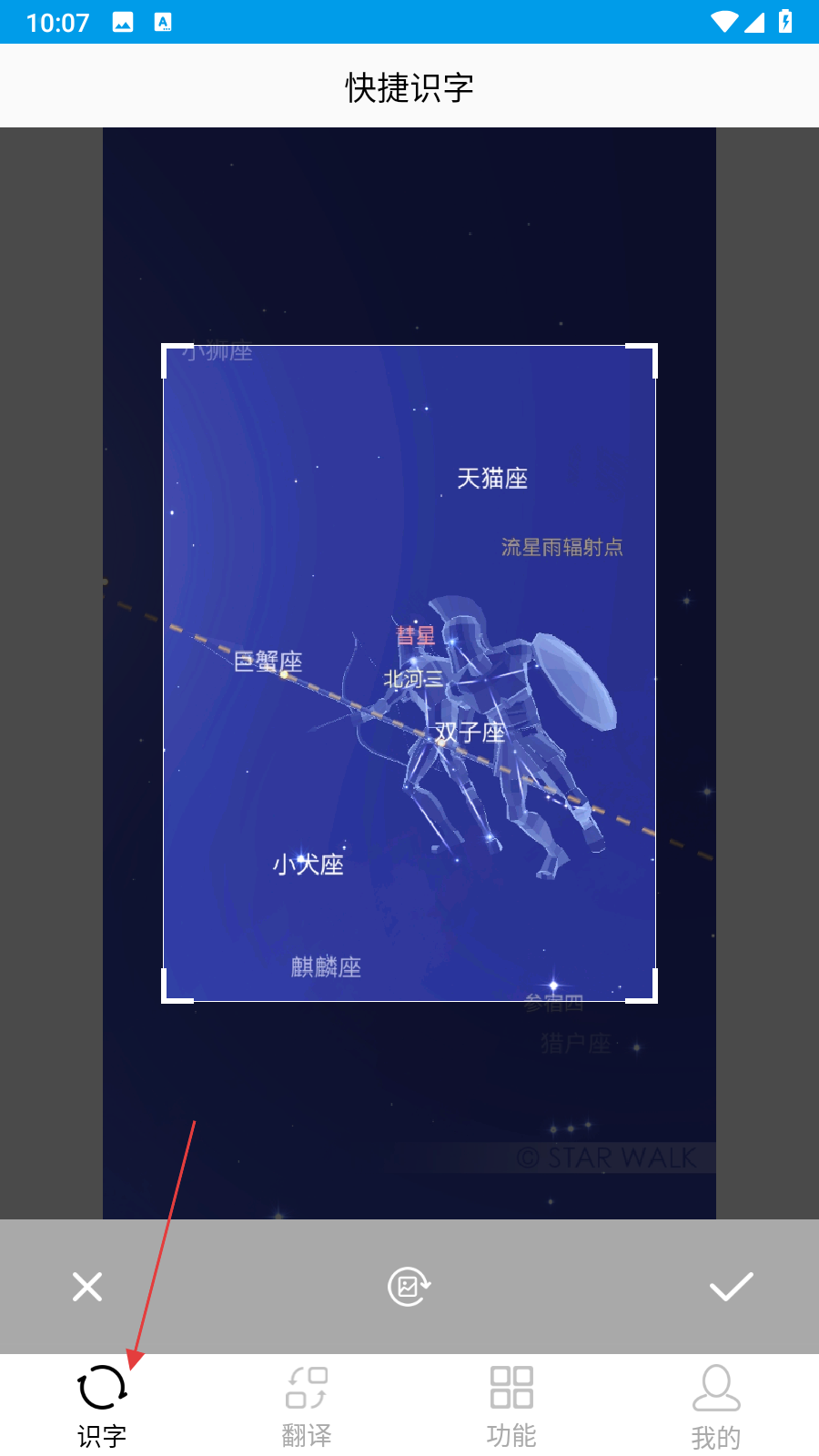 4、圖片選中后,進(jìn)入識(shí)別預(yù)覽界面,確認(rèn)識(shí)別區(qū)域等設(shè)置無誤后,點(diǎn)擊打勾即可完成本地圖片的文字識(shí)別操作。