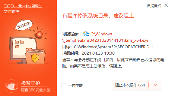 激活過(guò)程中360安全衛(wèi)士等殺毒軟件會(huì)有提示,如下圖,選擇“允許程序所有操作”