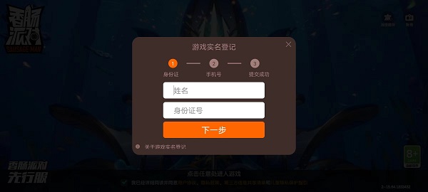 5、由于小編是第一次登錄游戲,所以進入了實名登記頁面,實名登記完成之后還需要綁定手機號,要求驗證碼;