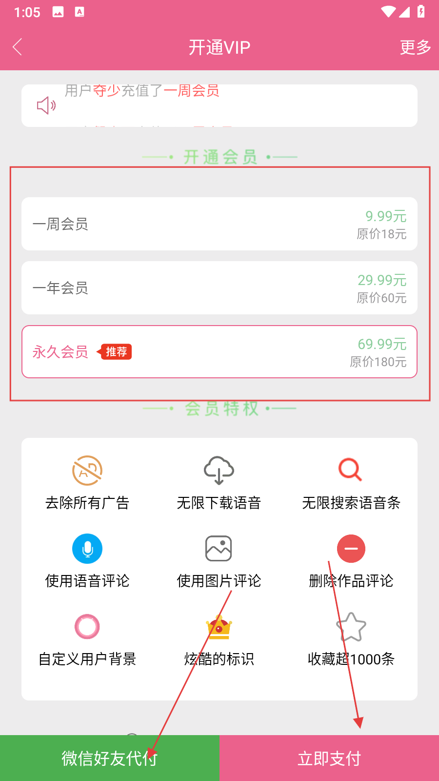 3、導入語音功能需要VIP,需要可根據自身需求,在開通VIP頁面選擇合適的會員套餐,完成支付即可,再進行語音包導入即可。