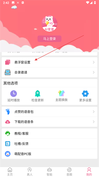 1、打開萌配音應用,點擊我的頁面中的馬上登錄按鈕,進入登錄選擇頁面。