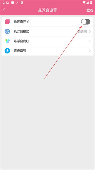3、在懸浮窗設置頁面,點擊懸浮窗開關。