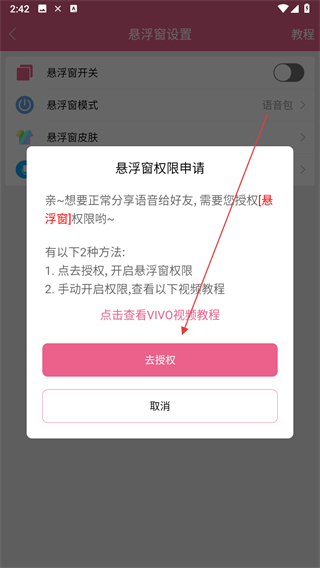 4、點擊去授權按鈕,即可開啟懸浮功能。