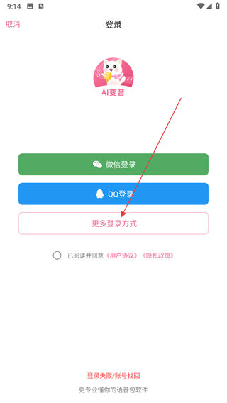 2、在登錄頁面點擊更多登錄方式選項,展開包含多種登錄途徑的選擇列表。