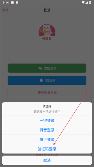 3、在展開的列表中點擊驗證碼登錄選項,跳轉至驗證碼登錄的信息填寫頁面。