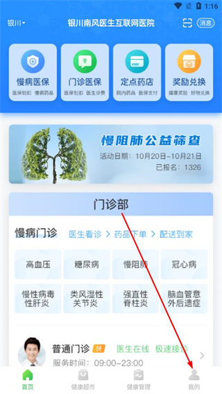 1、打開南風(fēng)醫(yī)生APP,點(diǎn)擊導(dǎo)航欄中的我的。