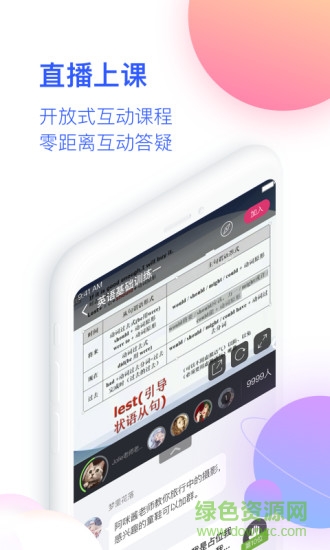 cctalk校園版app是針對(duì)學(xué)校設(shè)計(jì)的一款教學(xué)管理軟件,提供強(qiáng)大的功能模塊,開(kāi)放式直播上課,零距離課堂互動(dòng)輕松答疑解惑,離線緩存隨時(shí)隨地看課程無(wú)需流量,歡迎來(lái)綠色資源網(wǎng)下載!