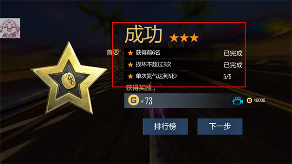 4、達成關(guān)卡條件后,在成功界面點擊“下一步”,繼續(xù)推進游戲流程。