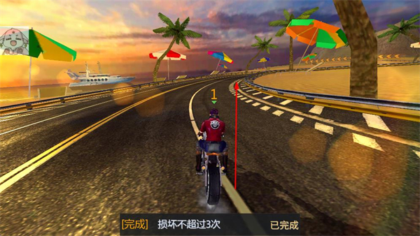 3、進入賽道后,操控摩托行駛,完成關(guān)卡要求的行駛目標。