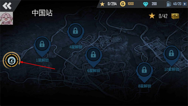 2、在地圖頁面,選擇已解鎖的關(guān)卡,進入對應(yīng)的競速賽道場景。