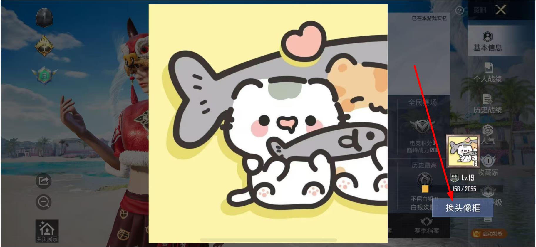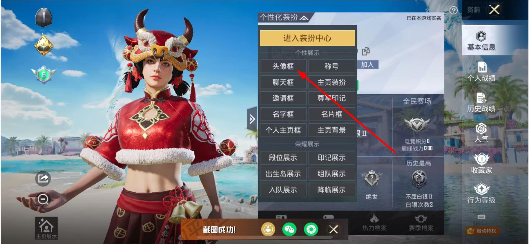 1、在游戲資料界面點(diǎn)擊個(gè)性化裝扮的頭像區(qū)域。