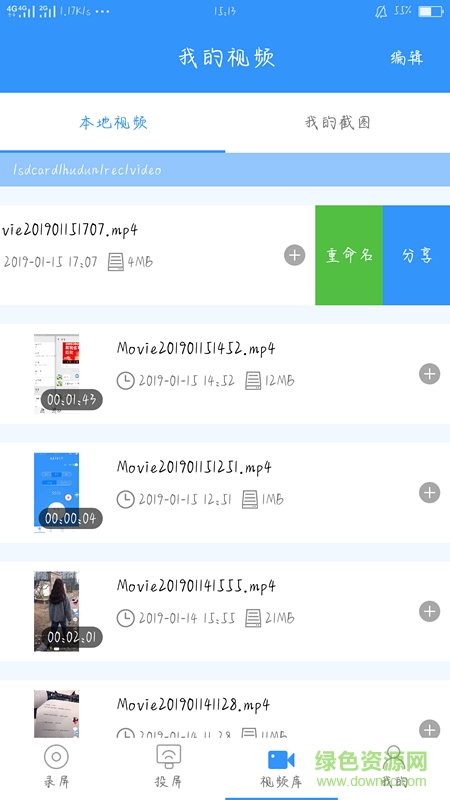 若是想查看本次錄制,我們可點擊底部導航欄上的視頻庫選項,在那里可以找到我們錄制好的手機屏幕視頻。