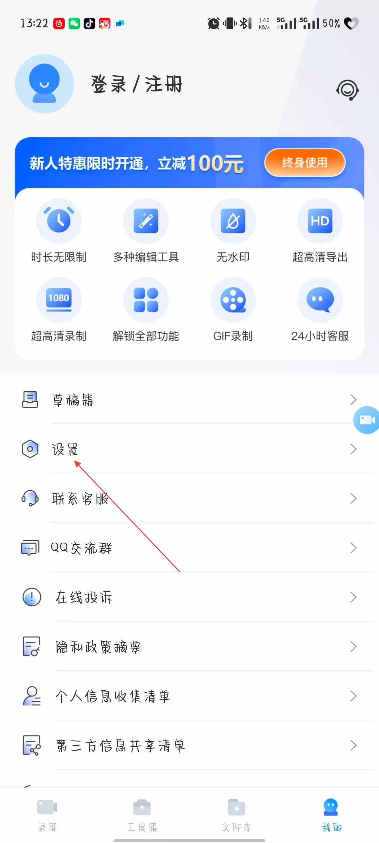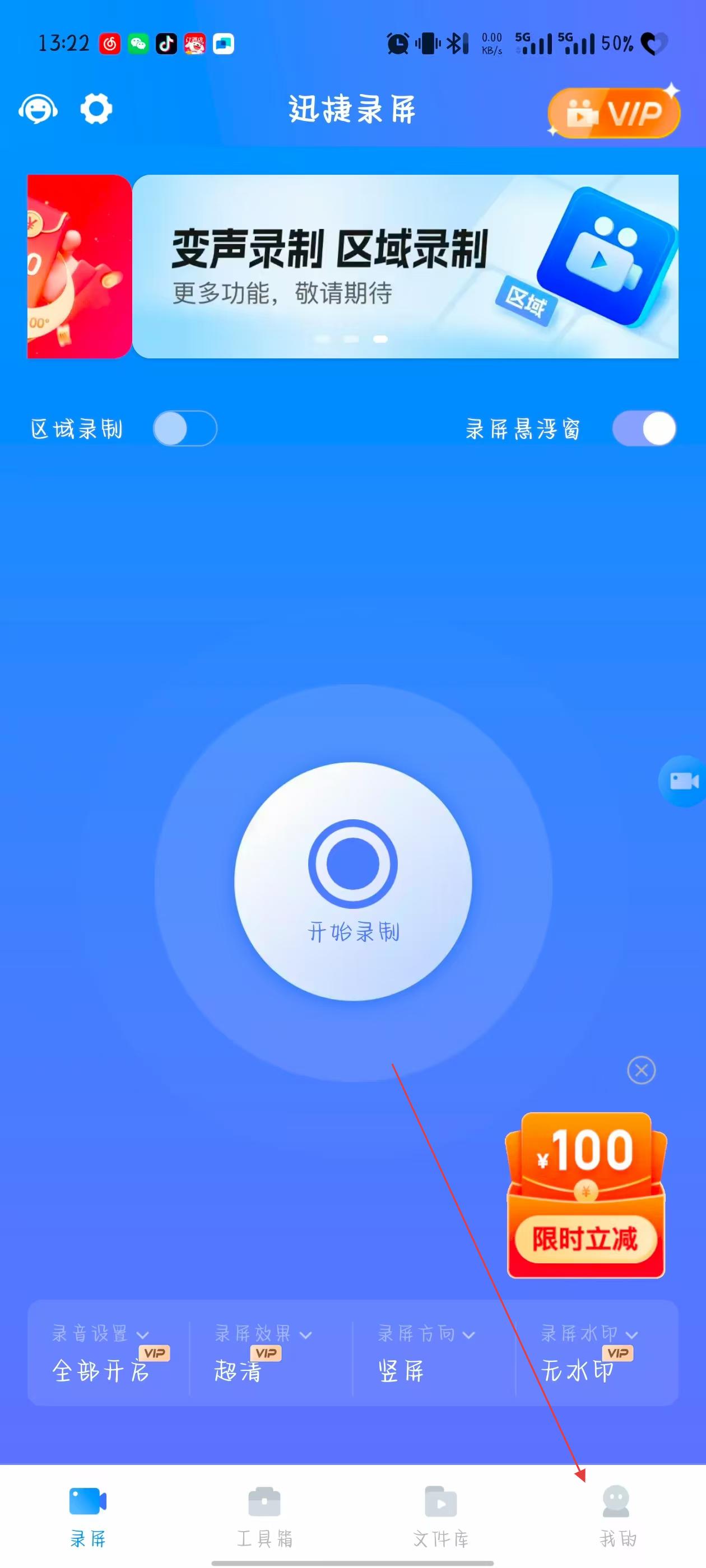 1、打開迅捷錄屏大師APP,點擊底部導航欄的我的,進入個人頁面。