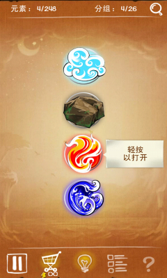 3、界面出現(xiàn)四個(gè)元素,玩家點(diǎn)擊不同的兩個(gè)即可結(jié)合;