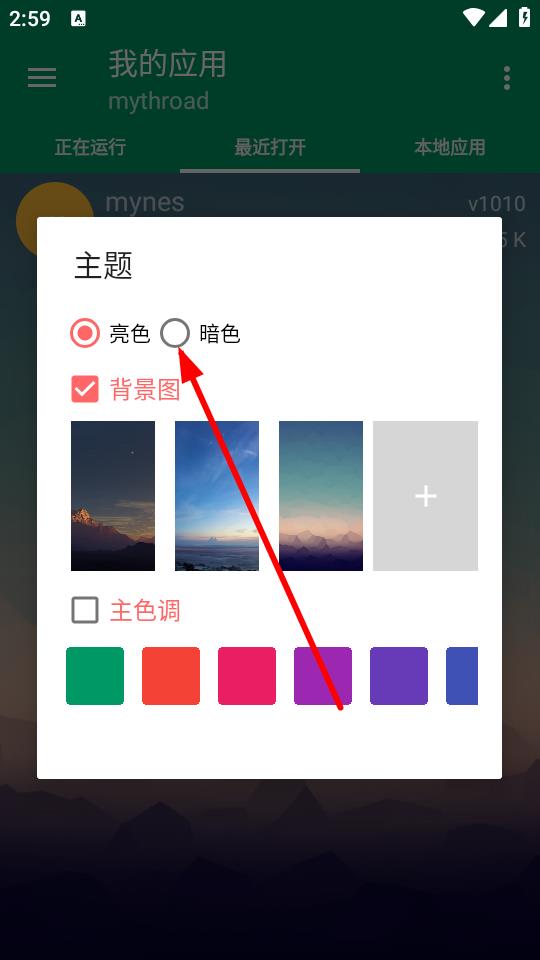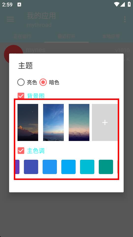 4、選擇完成后,更換背景圖,在背景圖區(qū)域選擇喜歡的圖片,也可勾選主色調(diào)并選擇合適的顏色。