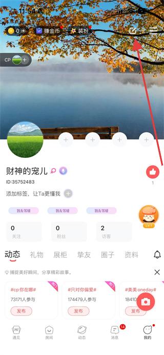 2、在我的頁(yè)面中,點(diǎn)擊右上角的編輯圖標(biāo)。