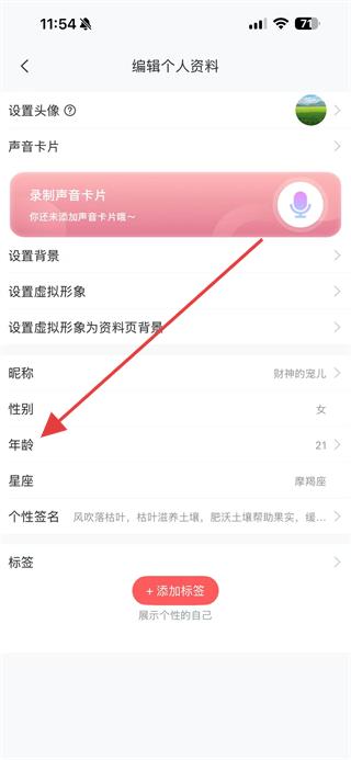 3、在編輯個(gè)人資料頁(yè)面,點(diǎn)擊年齡選項(xiàng)。