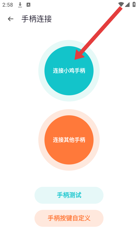 2、在手柄連接的頁(yè)面,可以選擇連接小雞手柄的按鈕,進(jìn)入手柄搜索的狀態(tài)。