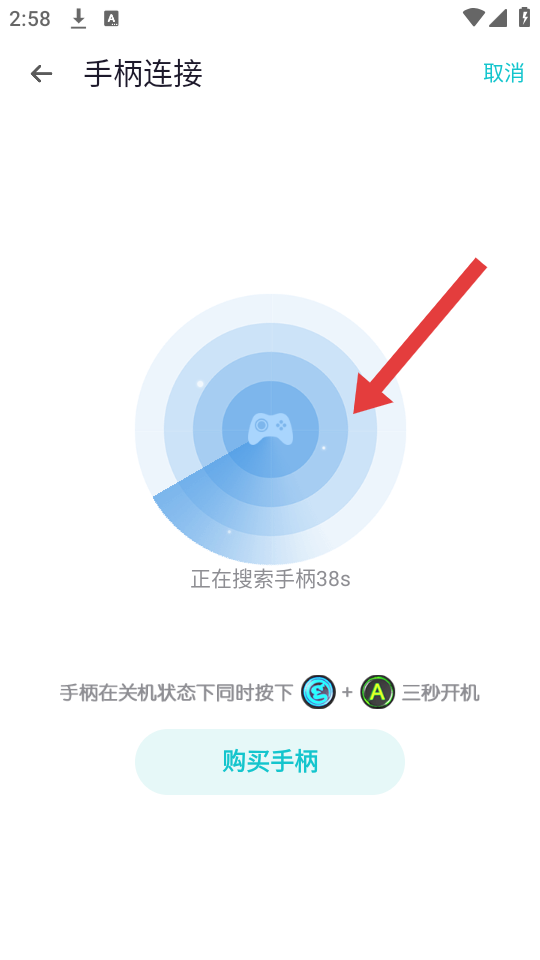 3、按照提示在手柄關(guān)機(jī)狀態(tài)下同時(shí)按下按鍵三秒開(kāi)機(jī),等待系統(tǒng)搜索并連接手柄,完成系統(tǒng)的配對(duì)。