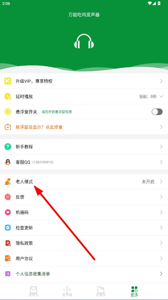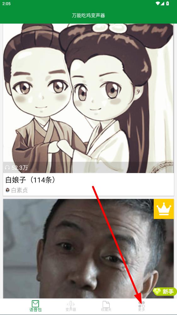 1、打開(kāi)萬(wàn)能吃雞變聲器APP,點(diǎn)擊底部導(dǎo)航欄最右側(cè)更多選項(xiàng)。