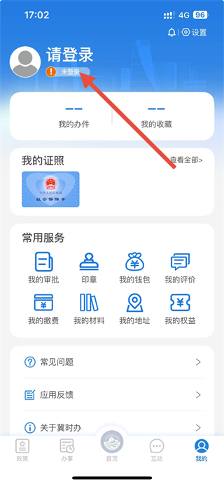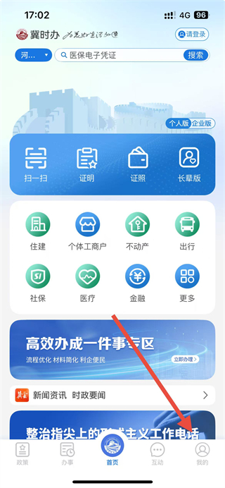 1、打開冀時(shí)辦app,點(diǎn)擊底部導(dǎo)航欄的我的選項(xiàng)進(jìn)入個(gè)人頁面。