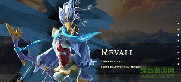 利巴爾(Revali),朗圖一族成員,“鳥人”,擅長使用弓箭,跟達魯克和米琺一樣戴著一條藍色的圍巾。