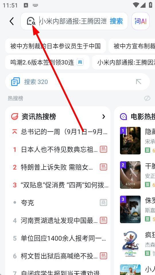 4、進入到搜索欄以后,在無痕模式下,uc瀏覽器不會在本地保存任何訪問歷史和搜索歷史信息。