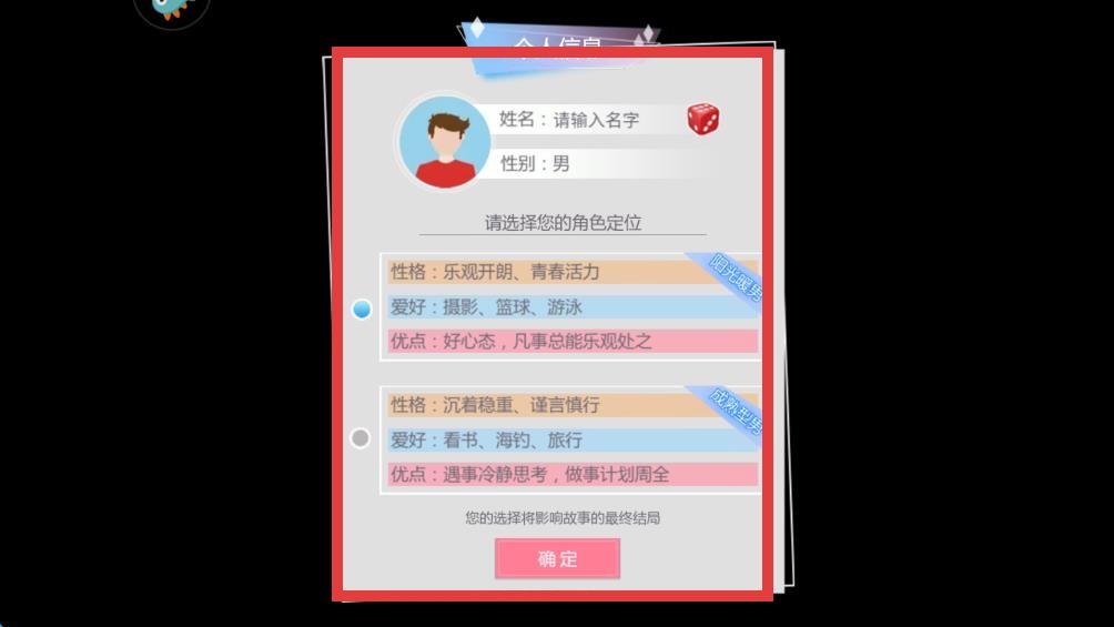 2、選擇自己喜歡的個人信息,確認(rèn)后點擊確定。