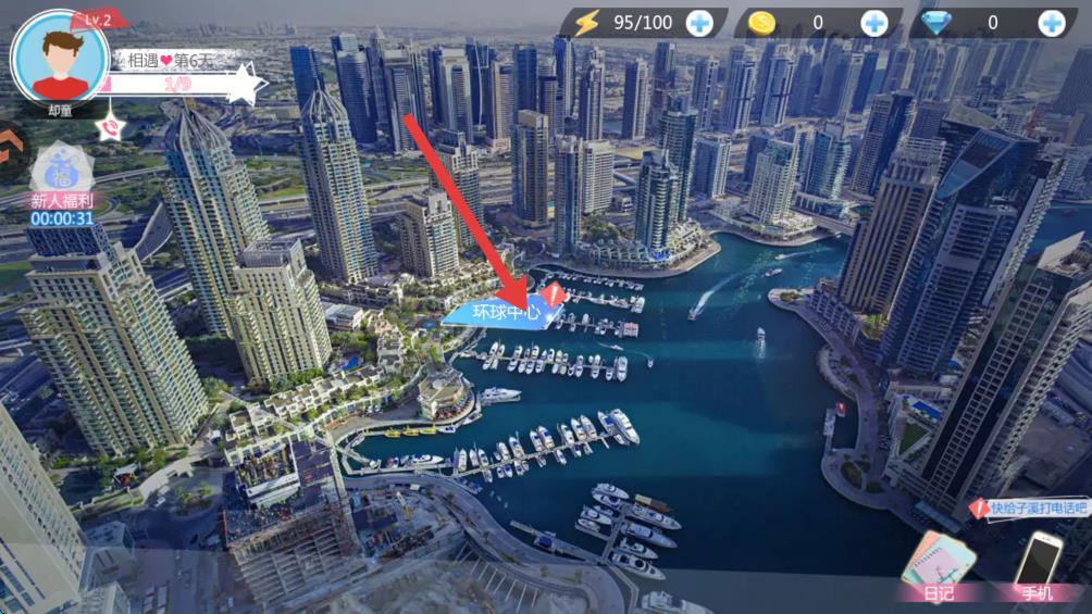 3、在游戲主頁面找到并點擊環(huán)球中心按鈕。