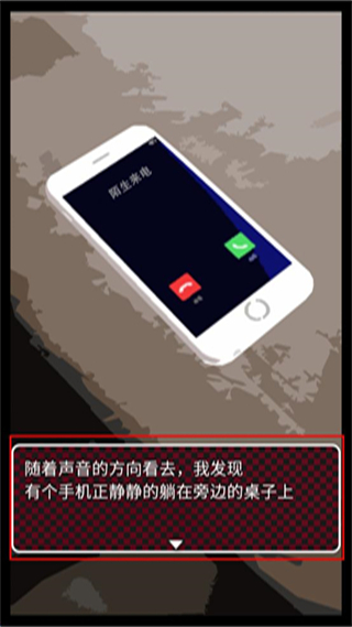 2、跟隨劇情提示,發(fā)現(xiàn)旁邊桌子上的手機(jī),查看陌生來電對(duì)應(yīng)的界面內(nèi)容。