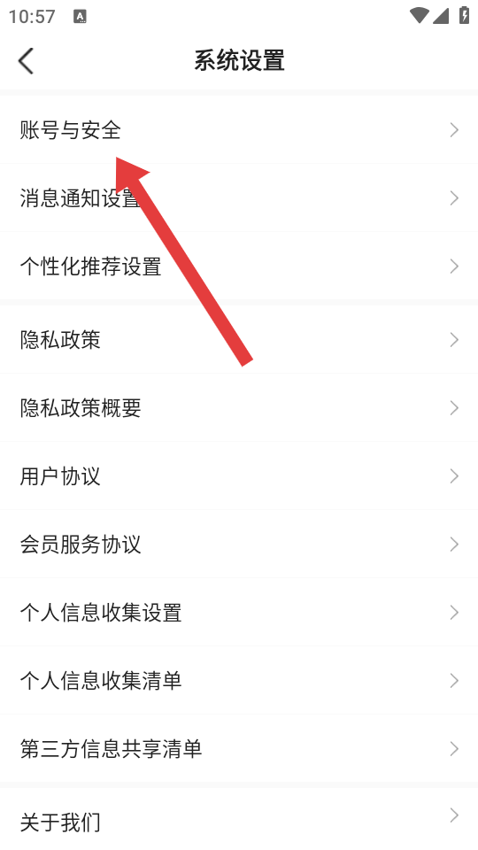 2、在系統(tǒng)設(shè)置頁面,點(diǎn)擊賬號與安全選項(xiàng),進(jìn)入賬號安全設(shè)置頁面。