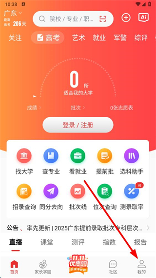 1、打開優(yōu)志愿APP,點(diǎn)擊右下角我的選項(xiàng)進(jìn)入個(gè)人頁面。