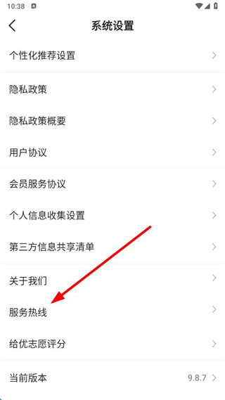 3、在系統(tǒng)設(shè)置頁面中,點(diǎn)擊服務(wù)熱線的選項(xiàng)。