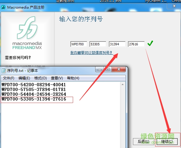 10.然后如圖把序列好復(fù)制進去,點擊繼續(xù),成功