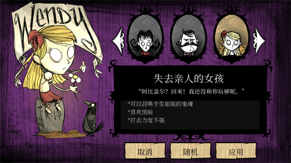 饑荒為數(shù)不多的0.75傷害角色,其實本來還好,但是姐姐太難控制了,我有好幾次都是因為姐姐而死(姐姐閑著無聊去干三級蜘蛛巢)